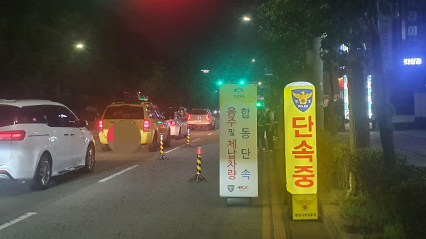 경찰서 음주단속과 병행하는 체납차량 번호판 영치 모습/천안시 제공