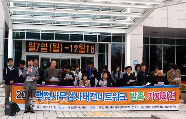 이날 발족식에서 금홍섭 대전참여연대 사무처장은 “최근 대전시정이 걱정될만큼 심각한 지경에 이르렀다”며 “인사논란, 신세계 쇼핑몰과 관련된 특혜의혹 등이 이러한 사례”라고 비판했다.