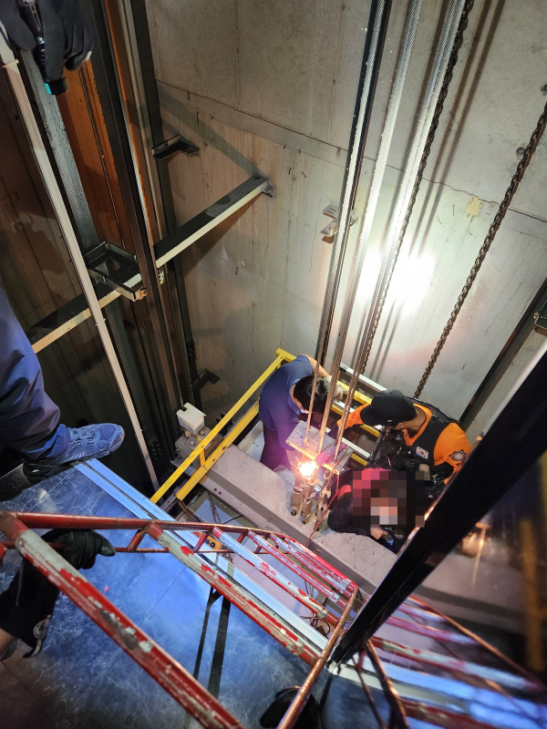 승강기 갇힘 사고 구조 모습/천안동남소방서 제공