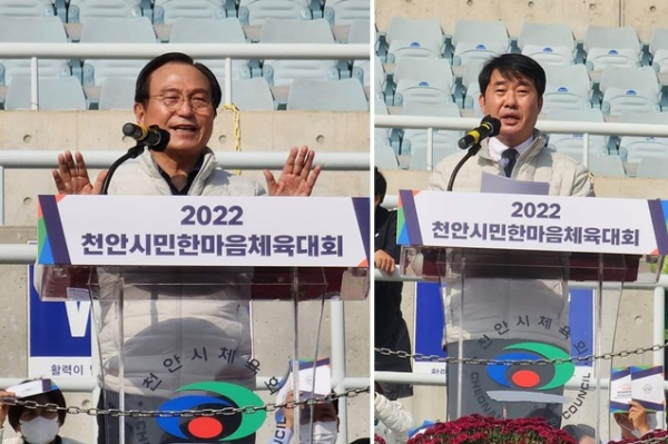 박상돈 시장은 축사에 나서 “이번 체전은 시민 모두가 스포츠로 하나 되는 감동적인 시간이 될 것”이라며 “오래 기다렸던 만큼 선수들 모두 후회 없는 경기력을 선보이길 바란다”고 격려했다.