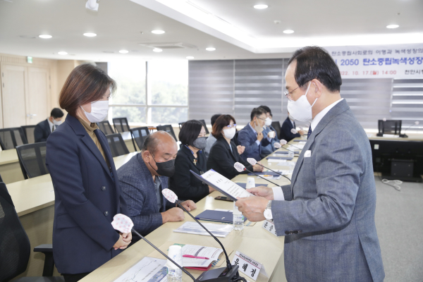 박상돈 천안시장은 “기후변화 대응 및 기후위기 적응의 중요성이 대두되고 있는 상황에서 2050 탄소중립녹색성장위원회가 앞으로 천안시 온실가스 감축 및 기후위기 대응 정책 마련에 크게 기여할 것으로 기대한다”고 말했다.