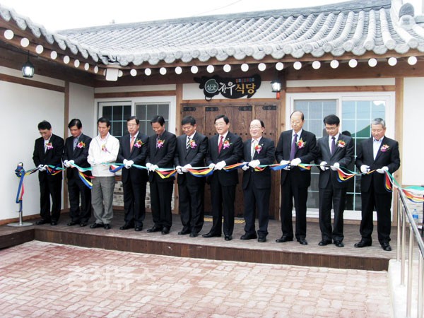 ▲ 한우식당 앞에서 커팅식을 진행하고 있다.