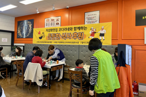평소 밖에서 식사하기 어려운 이용자들에게 외식의 기회를 제공하고, 지역의 나눔문화 확산에 기여하고자 열린 이날 나눔 행사는 자성화맛집코다리네 성성호수점에서 진행됐다.