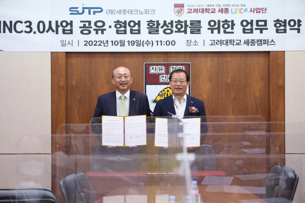 [충청뉴스 최형순 기자] 고려대학교 세종캠퍼스(부총장 김영)와 (재)세종테크노파크(원장 김현태)가 LINC3.0사업에서의 공동 발전을 위해 교류·협력하기로 했다.
