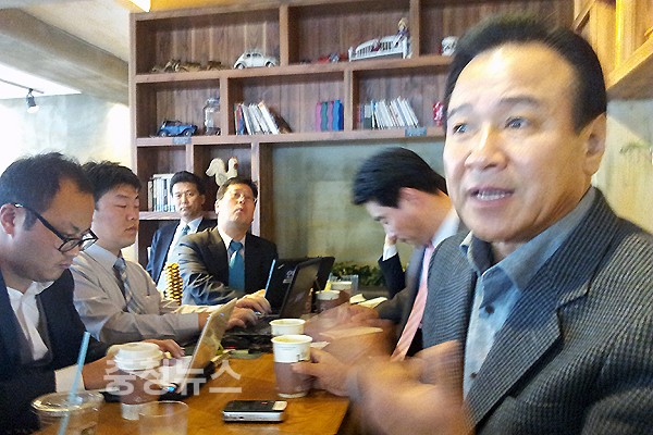 ▲ 이완구 前 지사와 대전일보 정재필 기자