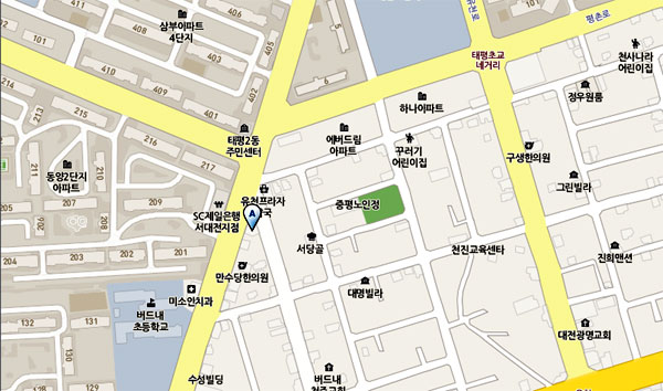 ▲ 버드내아파트 2단지 정문 건너편에 이탈리안 캐주얼 레스토랑 '스푼'이 위치해 있다.