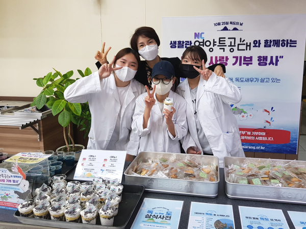 또 식품영양학과 동아리 영양특공대(NC)와 함께 독도 캐릭터와 모형 등을 형상화한 독도 쿠키, 독도 케이크, 독도 음료 등 독도 사랑 음식을 만들어 제공했다.