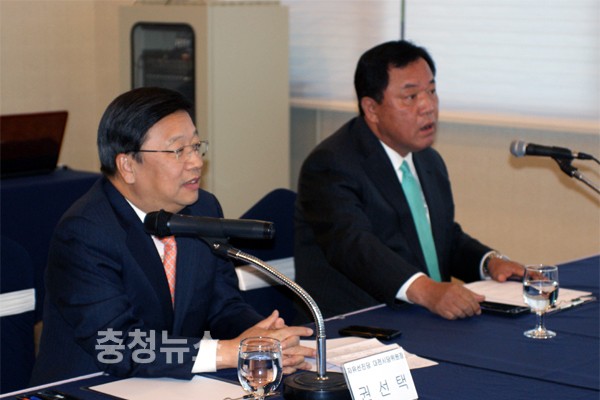 ▲ (좌측부터) 선진당 권선택 대전시당위원장, 류근찬 충남도당위원장