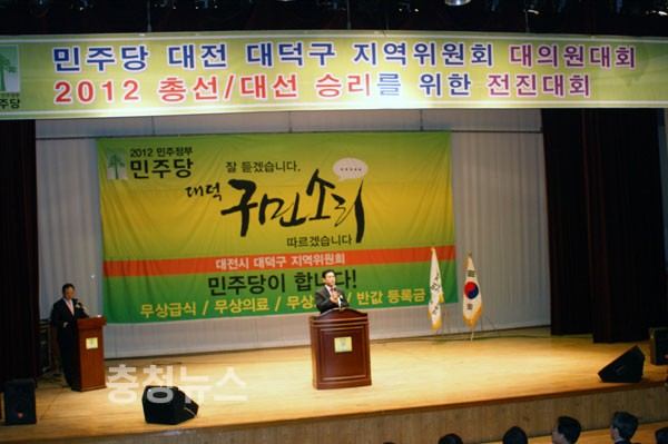 ▲ 2012 총선대선 승리 위한 전진대회 및 대의원대회가 청소년수련원에서 열렸다<사진 서지원기자>