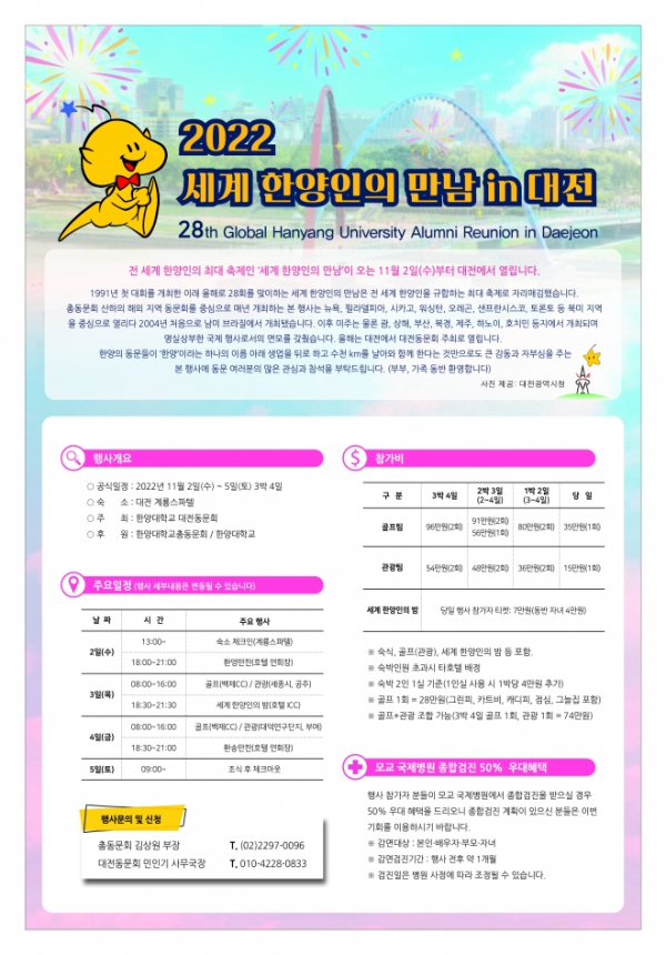 대전ICC와 계룡스파텔에서 진행되는 행사는 한양대 대전동문회가 주최하고 한양대·한양대 총동문회가 후원한다.