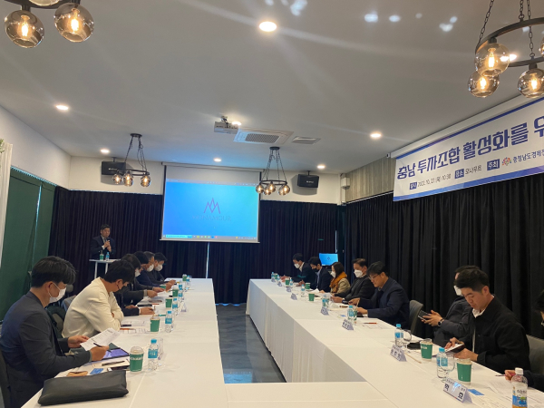 [충청뉴스 박동혁 기자] 충남경제진흥원(이하 진흥원)은 지난 27일 아산 모나무르에서 ‘2022년 충남 투자조합 활성화 간담회’를 개최했다.