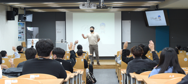 지난 27일 미디어랩스관에서 진행된 1차 특강에서는 ㈜몬스타 미디어 강한샘 대표가 ‘드라마처럼 살아라!’라는 주제로, 그간 웹 드라마 7편을 총괄했던 경험을 사례 중심으로 녹여내 학생들로부터 뜨거운 호응을 얻었다. 특히, 미디어 환경 변화를 주도할 전문가가 되기 위해 노력하는 미디어커뮤니케이션학과 학생들의 연이은 질문에 특강은 성황리에 마무리됐다.