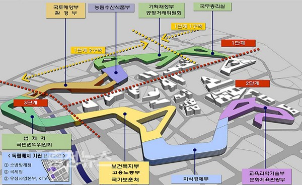 세부적인 이전 일정을 살펴보면 총리실은 오는 2012년 9월 중순부터 이전에 착수하고, 기획재정부를 비롯한 나머지 5개 부처는 오는 2012년 11월말부터 이전에 착수하되 부처별로 2~3주에 걸쳐 이전해 2012년 연내에 이전을 완료할 예정이다.