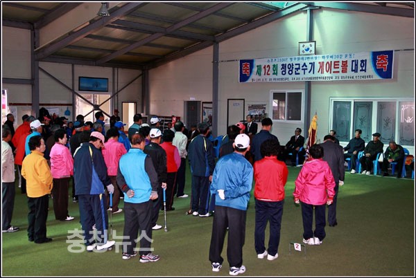 제12회 청양군수기 게이트볼대회가 청양읍 우성게이트볼장에서 지난 15일 각 읍면 분회별로 12개팀 100여명이 참가한 가운데 그동안 갈고 닦은 실력을 마음껏 겨뤘다.