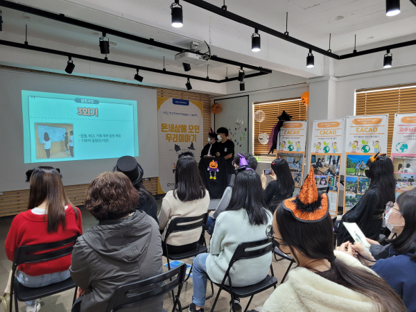 이번 학생자치배움터 나눔마당은 참여한 세 개 프로젝트팀 학생들에게 수료증을 전달하고, 팀별 활동 과정과 성과를 발표하며 공유하는 시간을 가졌다. 이어 모든 참여자와 길잡이 교사가 어울려 그동안의 배움을 나누는 축제 부스 형태의 할로윈 파티로 진행됐다.