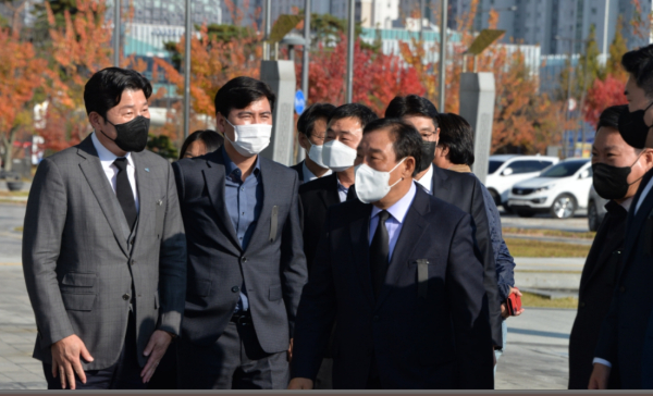 최민호 세종시장, 고기동 행정부시장, 이준배 경제부시장 등과 함께 분향소를 찾고있다.