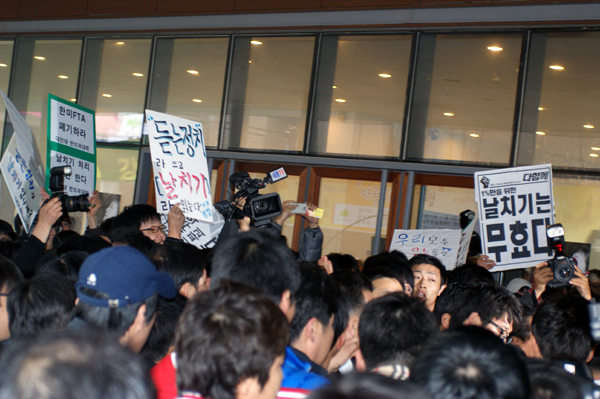 또 한의학과 한 학생이 한미FTA 복제약의 경우 지적재산권을 해외 기업이 갖고 있어 특허권 문제가 있다는 점을 지적하자 "자원도 없는 우리 나라가 앞으로 발전해 나가려면 국제사회와 튼튼하게 관계를 갖고, 경제영토 넓히면서 가능성을 키워나가야한다"며 "이것은 또다른 가능성"이라고 강조했다.