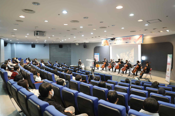 [충청뉴스 박동혁 기자] 남서울대학교는 10일 교내 지식정보관에서 장애 인식개선을 위한 힐링콘서트 ‘첼로앙상블 힐’ 공연을 개최했다.