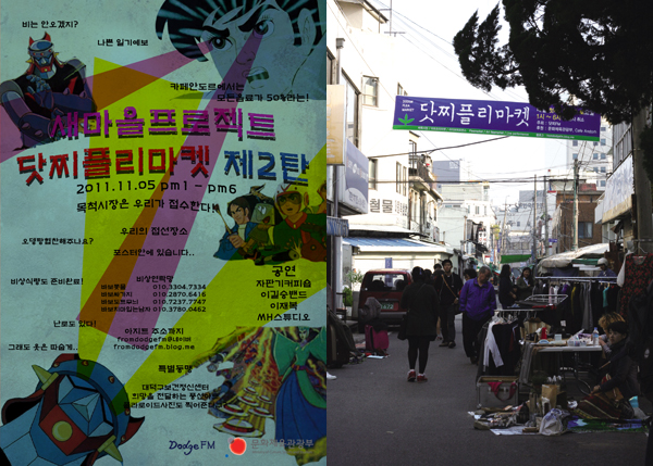 재개발로 언제 사라질지 모르는 동네에 상업적 취지보다는 의미 있는 일을 벌여 주체자 스스로 즐겨보고 싶다는 안도현 씨. 그는 동료와 닷찌FM이라는 법인을 세워 개발논리에 밀려 쇠락하는 동네에 문화를 꿈틀거리게 하자는 심산으로 ‘새마을 프로젝트’라 이름 붙였다. 지역에서 활동하는 작가 가운데 뜻이 맞는 사람들을 모았고 지난 9월 선화동에서 첫 플리마켓을 열었다.
