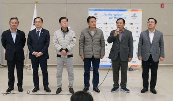 충청권 유치 성과를 기념하기 위해 인천공항 입국장에서 열린 이날 행사는 최근 발생한 이태원 사고를 애도하는 차원에서 대한체육회 귀국 보고회, 기념촬영 등 최소화해 진행됐다.
