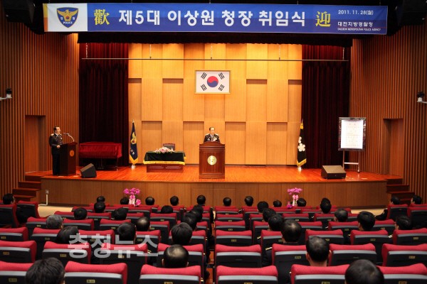 제5대 이상원 대전지방경찰청장 취임식이 28일 본청 무궁화홀에서 경찰지휘부 등 전 직원 430여명이 참석한 가운데 열렸다.