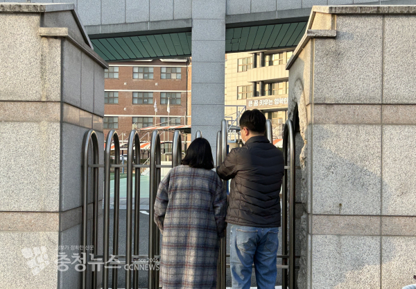 [충청뉴스 김윤아 기자] 2023학년도 대학수학능력시험이 치러지는 17일 오전 대전시교육청 제27시험지구 11시험장 만년고등학교 교문 앞에서 학부모가 수험생을 응원하고 있다.