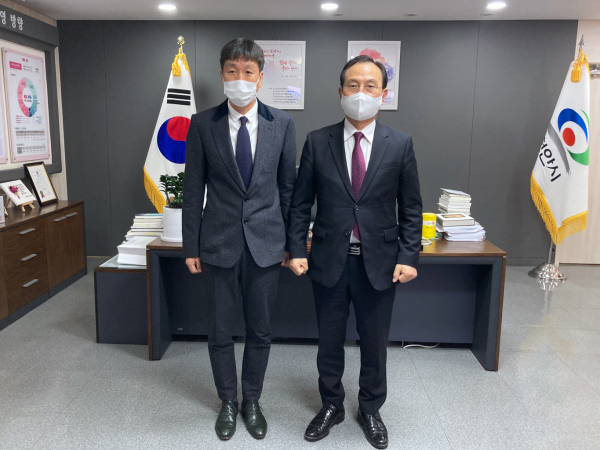 [충청뉴스 박동혁 기자] 내년부터 K리그2에 참가하는 천안시민프로축구단의 구단주인 박상돈 천안시장과 박남열 신임 감독이 첫 만남을 가졌다.
