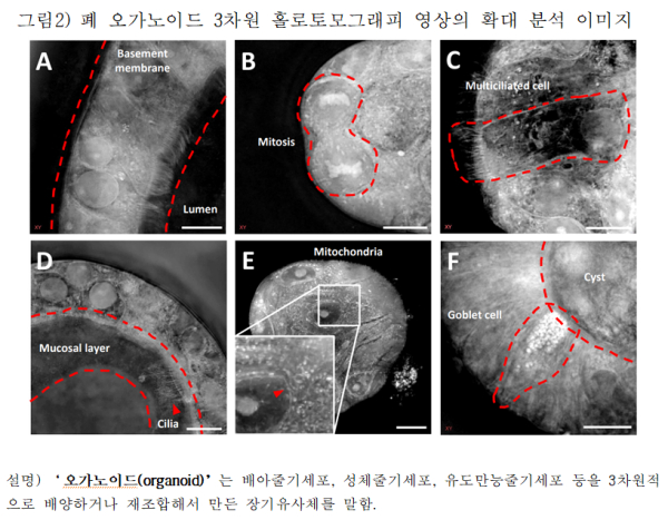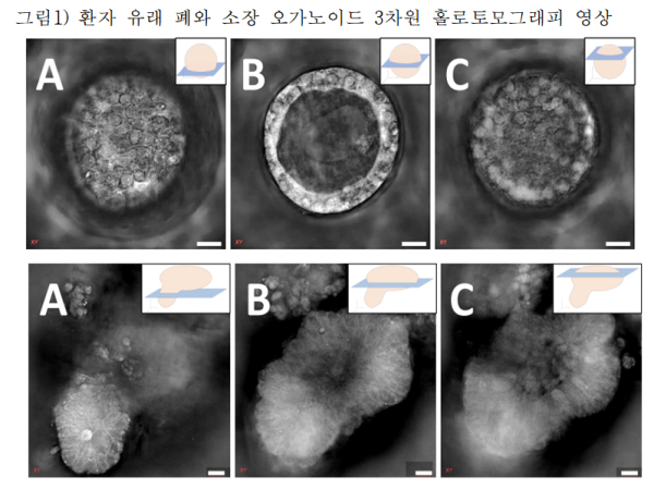 연구팀은 살아있는 비수술유래 폐암 오가노이드의 3차원 영상을 표지 없이 100nm 수준의 고해상도 영상으로 정밀하게 측정하고, 정량 분석할 수 있는 기술을 공동으로 개발했다.