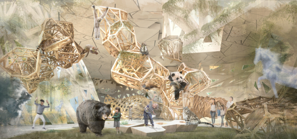 우수상을 수상한 4학년 이승주, 홍예원, 강유진 학생의 작품은 ‘앤데믹 시대, 희귀동물과 만날 수 있는 언택트 문화소통공간’을 주제로 4,000여 종이 넘는 야생 동식물이 서식하는 DMZ의 자연환경과 조화돼 함께 호흡하고 성장해나가면서 희귀동물을 언택트로 만날 수 있는 새로운 체험전시공간 ‘Breathing Veins’를 제안했다.