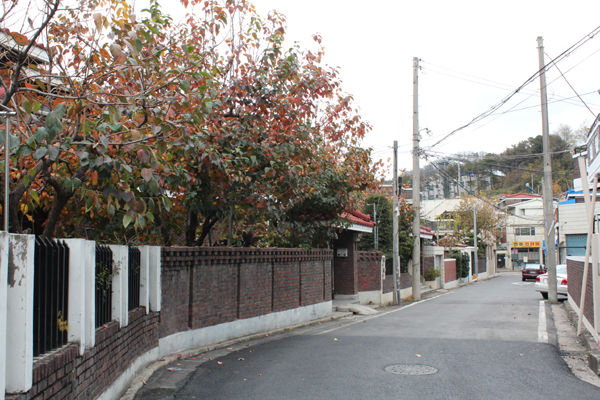 집마다 정원수가 다양한데 그중 가장 많은 것은 감나무다. 골목에서 만난 금씨 아저씨도 홍시와 단감을 따느라 여념이 없었다. 감나무 가지는 잘 부러져 위험하다는 둥, 새살떠는 이방인에게 아저씨는 홍시 하나를 던져준다. 마당에서 함께 감을 따던 아주머니도 문을 열고 나와 가지에 달린 단감 몇 개를 건네주곤 “사각거리고 맛있다.”라는 말을 남긴 채 대문 안으로 사라진다. 담장 너머로 날아온 ‘정’에 웃음이 난다. 커다랗고 껍질이 두꺼운 홍시는 무척 달았다. 단감은 책상 위에 올려놓았다.