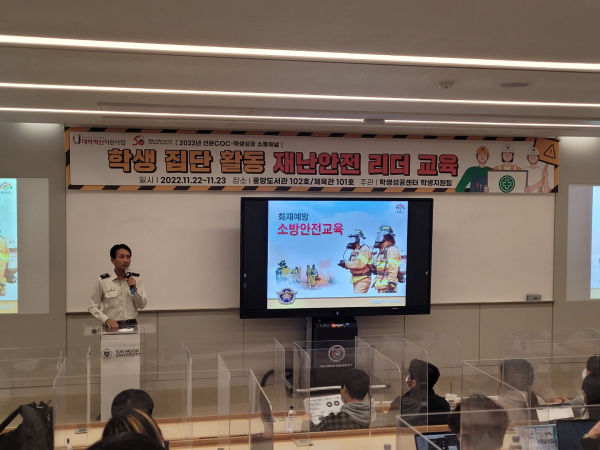 이번 교육은 선문대의 요청으로 아산소방서와 선문대 학생의 안전을 관리하는 선문건강센터, 학생상담센터, 안전관리센터가 연계해 재난 안전 대비를 위한 통합 교육으로 진행됐다.