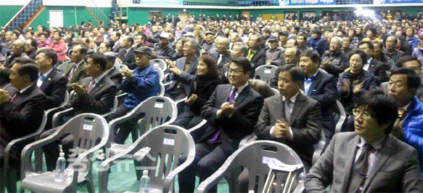 ▲ 2천여명의 당원 및 당직자가 대천체육관을 가득 메웠다.