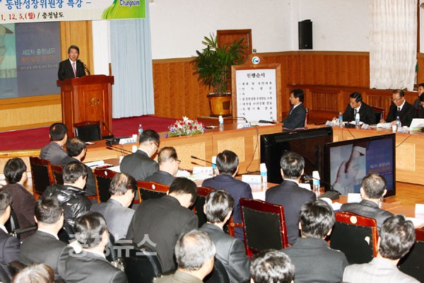 정운찬 동반성장위원회 위원장(前 국무총리)은 5일 도청 대회의실에서 ‘충청남도 동반성장협의회’를 갖고, 대·중소기업 상생 발전 우수사례 등을 공유했다.