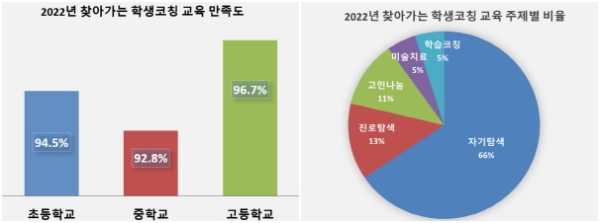 윤기원 교육정책과장은 “찾아가는 학생 코칭 교육이 학교 현장에서 학생들이 자기와 타인을 이해하고 자신의 진로를 탐색하는 의미있는 시간이 되어 학생 및 교사 모두에게 높은 만족도로 마칠 수 있어 매우 뜻깊다. 내년에는 더 많은 학교를 지원할 수 있도록 학생 코칭 교육을 확대 운영하도록 하겠다”라고 밝혔다.
