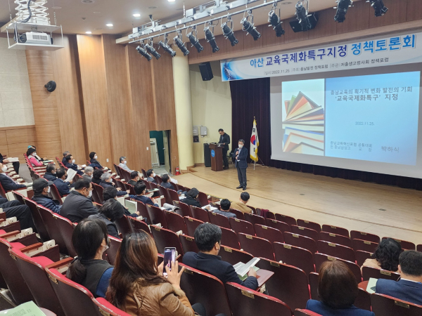 [충청뉴스 박동혁 기자] 충남발전 정책포럼(공동대표 박하식, 황종헌)은 25일 아산청소년교육문화센터에서 아산시 교육국제화 특구 지정을 위한 정책토론회를 개최했다.