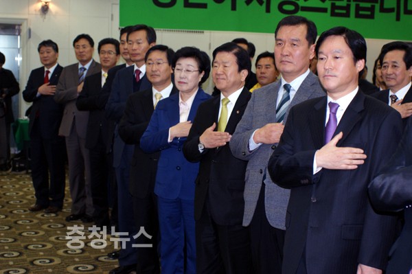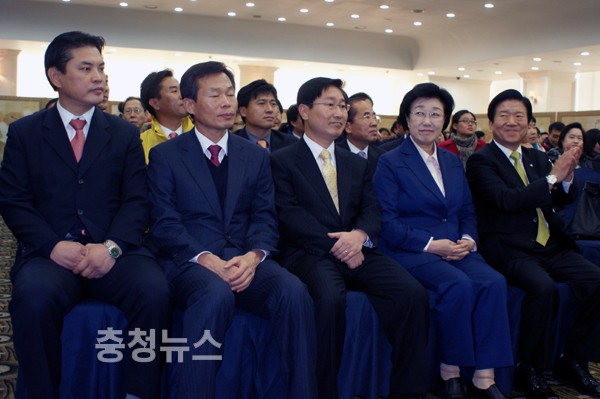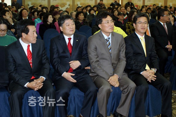 이에 앞서 축사에 나선 박병석 국회의원은 “민주주의의 근간을 부정하는 한나라 정권은 국민의 심판을 받고 물러나야 한다”며 “있는지 없는지도 모르는 자유선진당에도 우리 운명을 맡길 수 없다”고 비판했다. 또 “통합된 민주당이 그들의 뜻을 대변해야 한다.