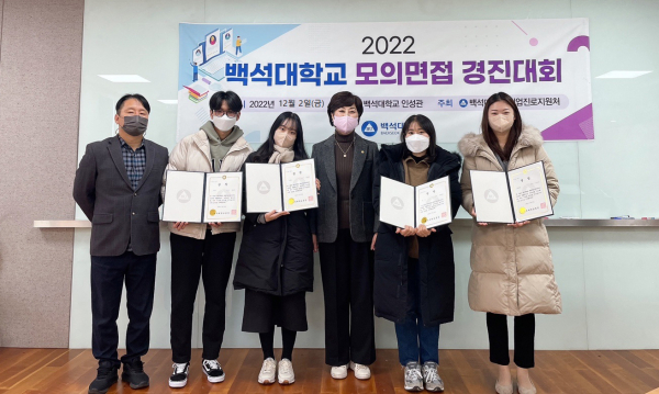 [충청뉴스 박동혁 기자] 백석대학교 취업진로지원처는 2일 교내 인성관에서 ‘2022 백석대학교 모의면접 경진대회’를 열고 시상식을 진행했다.