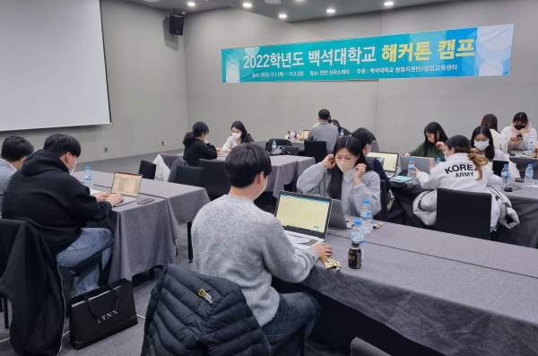 [충청뉴스 박동혁 기자] 백석대학교 창업교육센터는 천안 신라스테이에서 29명의 재학생이 참여한 가운데 ‘2022 백석대학교 해커톤 캠프’를 진행했다고 2일 밝혔다.