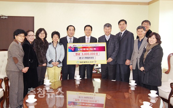 대전 서구(구청장 박환용)는 서구지역아동센터협의회(회장 박문수)로부터 저소득층 아동을 위한 장학금 300만원을 지정 기탁 받아 훈훈하고 따뜻한 이웃 사랑의 정을 나눴다.