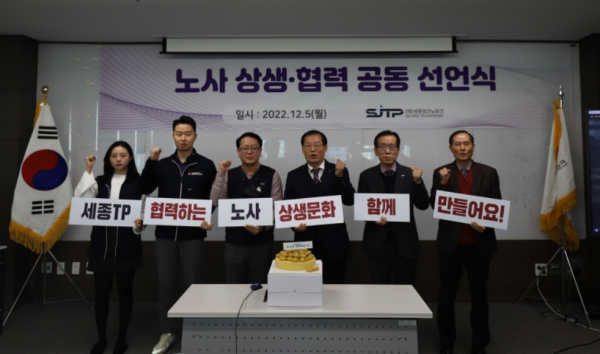 [충청뉴스 최형순 기자] (재)세종테크노파크(원장 김현태, 이하 세종TP)는 5일 재단 월례 회의를 통해 노사 화합 공동 선언식을 가졌다.