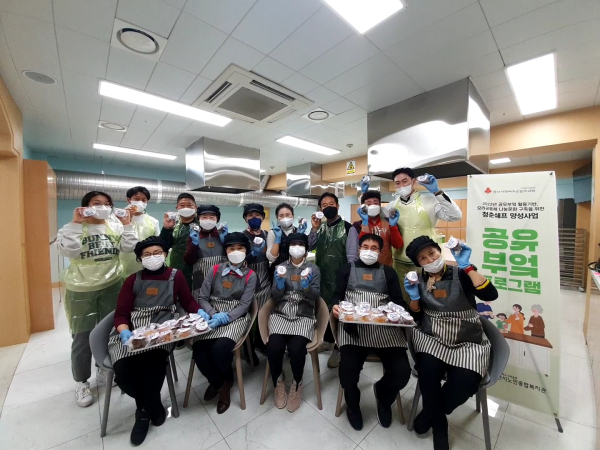 이날 행사에는 요리 교육훈련을 통해 양성된 아산시노인종합복지관 어르신 봉사단 청춘쉐프팀과 공단 임직원 등 20여 명이 1:1로 매칭해 아산시노동자복지관 지하 1층 공유부엌 모락모락에서 초코, 황치즈 머핀 등 아이들이 좋아하는 간식을 함께 만들며 다양한 세대 간 소통과 교류를 나누는 시간을 가졌다.