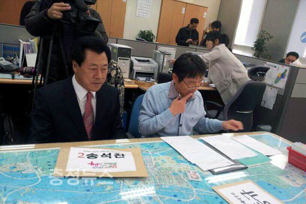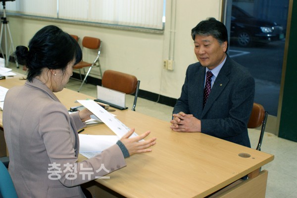 ▲ 선병렬 위원장이 서류를 접수하고 있다.