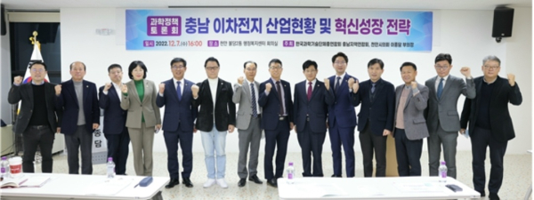 토론회에서는 정도희 천안시의장, 한군희 충남과총회장이 참석해 축사를 했고, 유동주 교수(선문대)가 발제자로 나서 친환경 자동차 이차전지 혁신성장을 주제로 발표했으며, 충남의 주력산업인 친환경 모빌리티에 이차전지산업의 연계를 통한 핵심부품 개발 및 성장기반 마련을 제안했다.