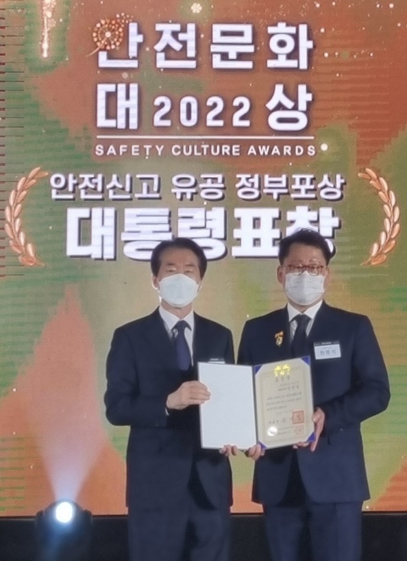 [충청뉴스 박동혁 기자] 충남 아산시 한영석 도로과장이 지난 12일 정부세종컨벤션센터 대연회장에서 열린 ‘2022 안전문화대상’ 시상식에서 안전신고 분야 유공 대통령상 수상의 영예를 안았다.
