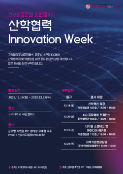 [충청뉴스 최형순 기자] 고려대학교 세종캠퍼스 LINC3.0사업단(단장 김영)이 19일부터 22일까지 ‘글로벌 초연결ICC 산학협력 Innovation Week’을 개최한다.