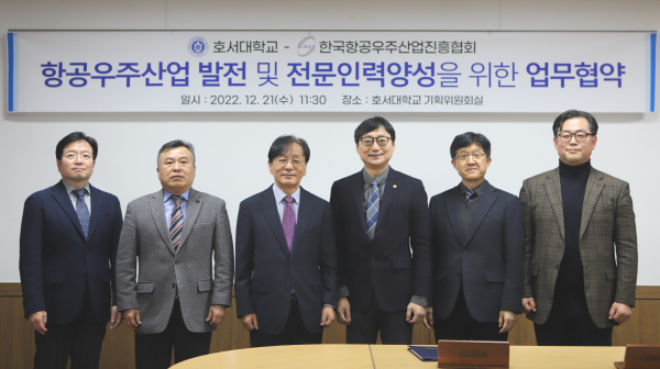 [충청뉴스 박동혁 기자] 호서대학교는 한국항공우주산업진흥협회(이하 KAIA)와 ‘항공우주산업 발전 및 전문인력 양성’을 위해 지난 21일 아산캠퍼스에서 업무협약을 체결했다고 밝혔다.