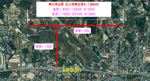 홍성 북서부순환 도시계획도로는 도청대로부터 소향삼거리까지 연장 1.94km 폭 20~24m 노선을 개설하는 사업으로, 군은 내년 착공에 들어가 2025년 말 완공을 목표로 사업추진에 박차를 가한다고 밝혔다.