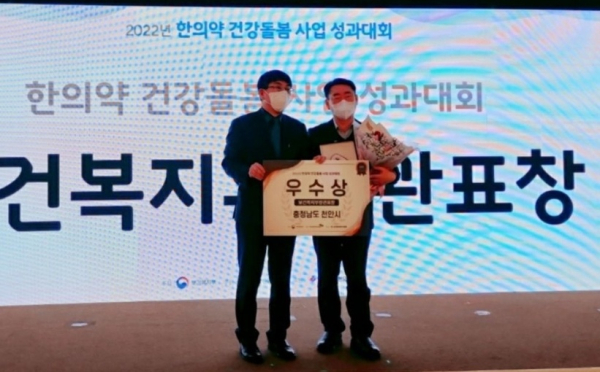 [충청뉴스 박동혁 기자] 충남 천안시는 보건복지부와 한국한의약진흥원이 주관한 ‘2022년 한의약 건강돌봄 사업 성과대회’에서 ‘지역사회 통합돌봄 한의진료 우수 지자체’로 선정됐다고 26일 밝혔다.