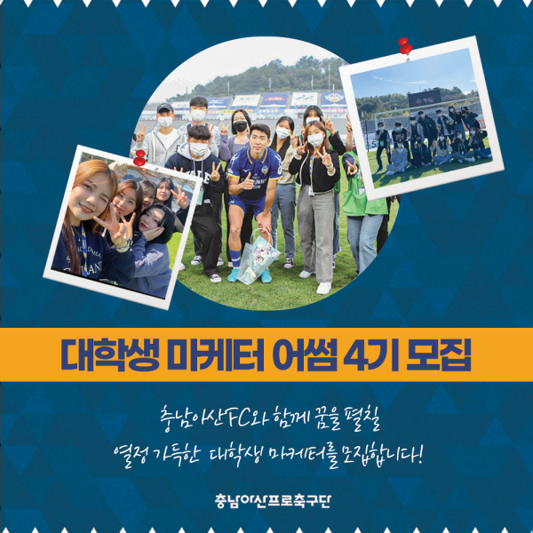[충청뉴스 박동혁 기자] 충남아산프로축구단(이하 충남아산)이 구단 대학생 마케터 ‘어썸’ 4기를 모집한다.