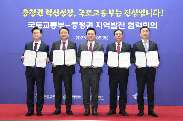 [충청뉴스 최형순 기자] 국토교통부(장관 원희룡)는 5일 충청북도 청사에서 최민호 세종시장, 김태흠 충남지사, 김영환 충북지사, 이택구 대전시 행정부시장과 함께 국토교통부-충청권 지역발전 협력회의를 개최했다.